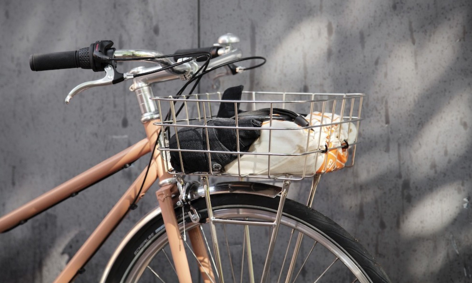 Der Rasket Frontkorb wird an der Gabel montiert und sitzt so tiefer als normale Lenkerkörbe (und sieht auch noch etwas schicker aus). Der rund 15cm hohe Rand hält deine Sachen gut am Platz, auch wenn du sie nur einfach in den Korb legst.