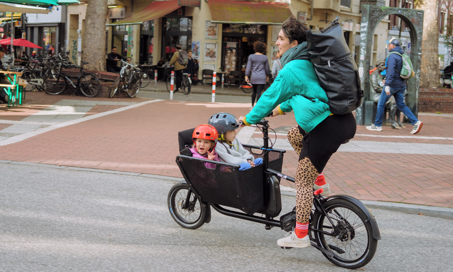 So eignet sich das Muli bestens als praktisches Alltagsrad mit etwas mehr Transportkapazität (etwas mitzunehmen gibt es ja immer), als Familienrad für den Kindertransport oder als Fahrzeug für den Hund.