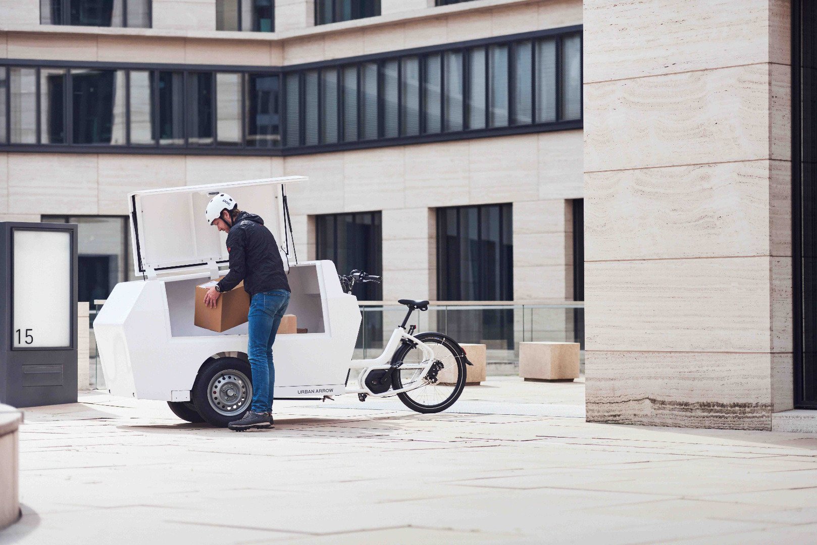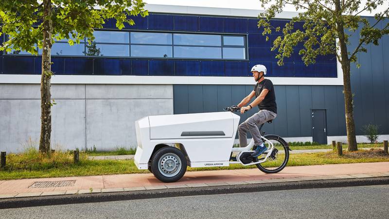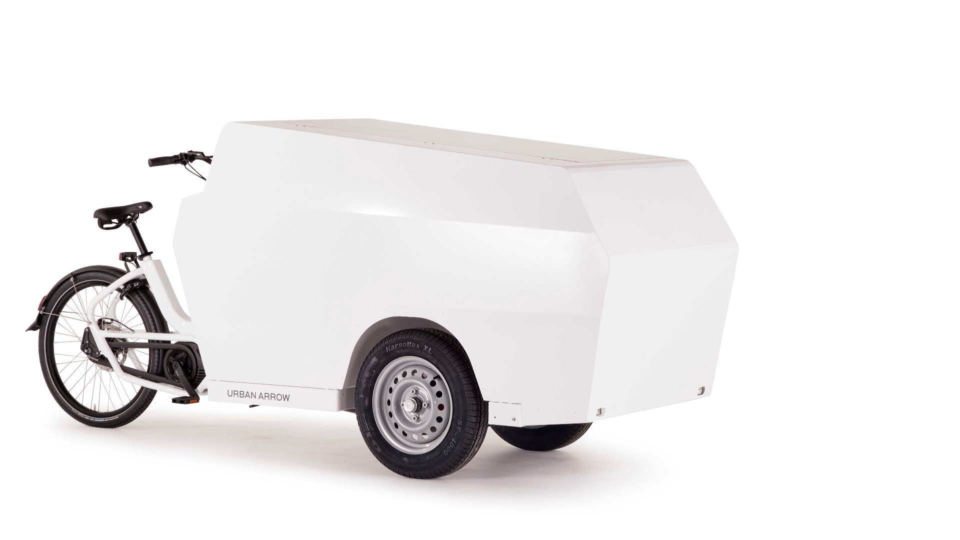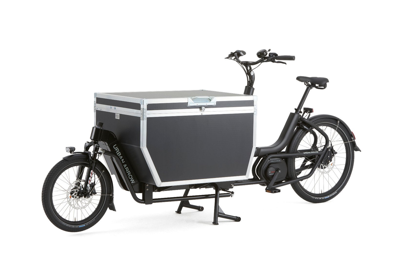 Im selben charakteristischen Design bietet Urban Arrow für den gewerblichen Bereich eine Flotte verschiedener Fahrzeuge mit den unterschiedlichsten Aufbauten an. Damit findet sich praktisch für jedes Business das passende Cargobike.