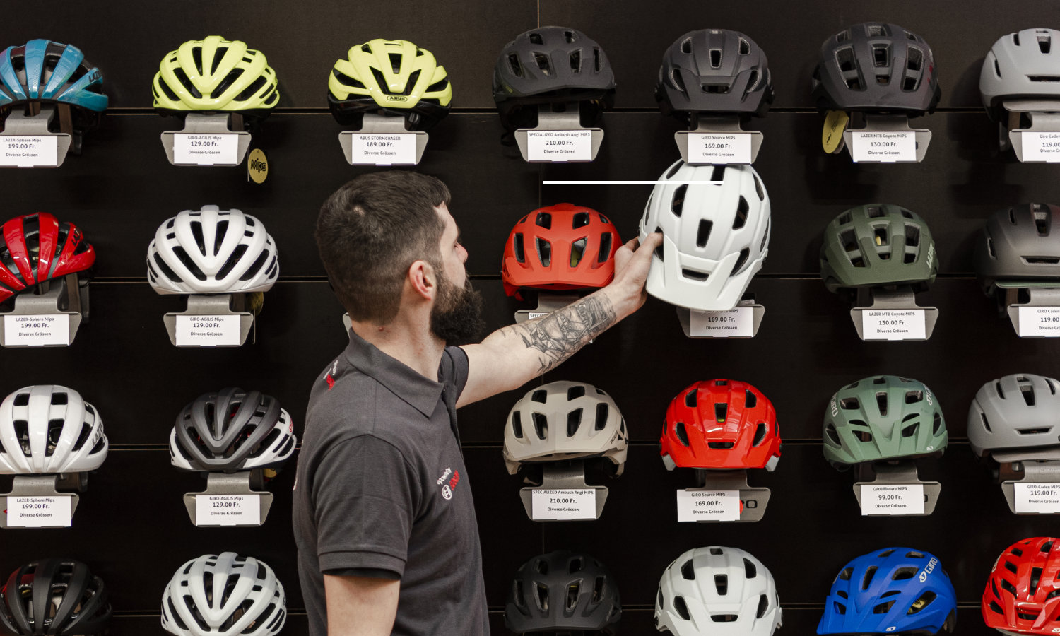 Wir haben ein grosses Angebot an Helmen von Abus für aufs E-Bike, aufs Rennvelo, für die Velotour, für Kinder in allen Grössen und Farben. Komm vorbei - lasse dich beraten - profitiere vom Cashback - fahre mit dem passenden Helm davon. So einfach!