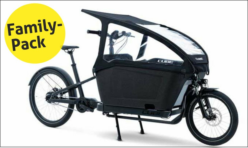 günstig und gut: das Familiencargo von Cube im Familienpack für 4299.- (inklusive Kindersitze und Verdeck). Mehr ...
