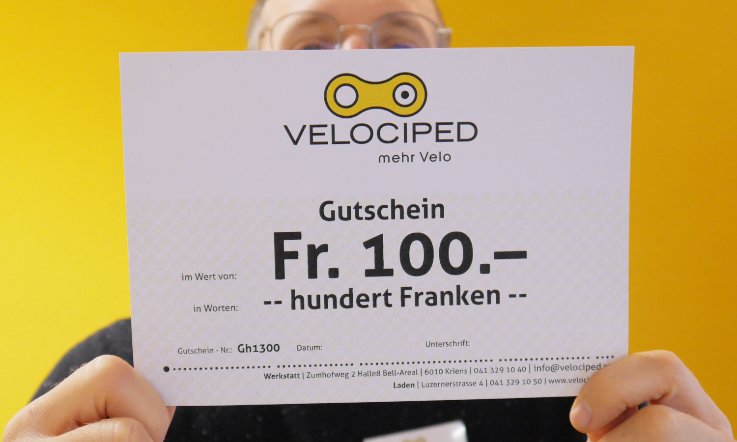 Immer praktisch, immer willkommen ... Unsere Geschenk-Gutscheine. Sie sind bei uns im Laden, in der Werkstatt und auch im Ambrosia gültig und haben natürlich kein Ablaufdatum. Die kannst du - auch in letzter Sekunde noch - bei uns abholen kommen, oder wir schicken sie dir zu. Neu haben wir auch Gutscheine für eine Velo-Reinigung oder gar eine Velo-Beauty-Care (Velo- und Antriebsreinigung) was immer gut ankommt. Mehr ...
