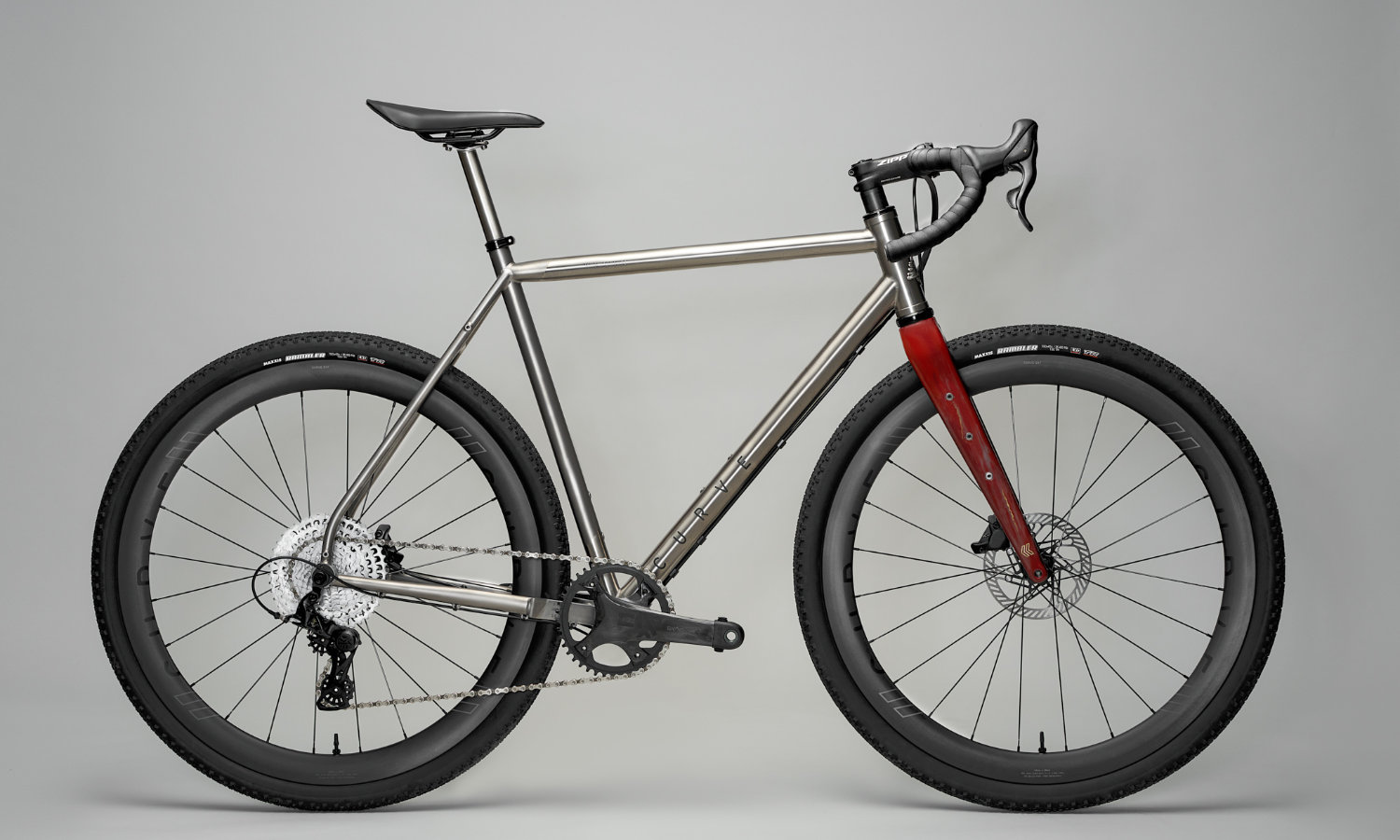 Curve hat zu ihren Velos einige Komponenten entwickelt, zum Beispiel besonders breite Gravel-Lenker, Steckachsen an welchen Gepäckträger montiert werden können, Gabel, Lenkerbänder. Auch diese Teile führen wir bei uns im Sortiment.