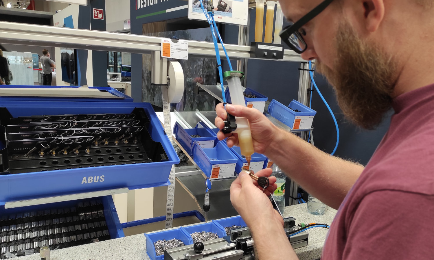 Christian montiert einen Schliess-Zylinder für ein ABUS Schloss.