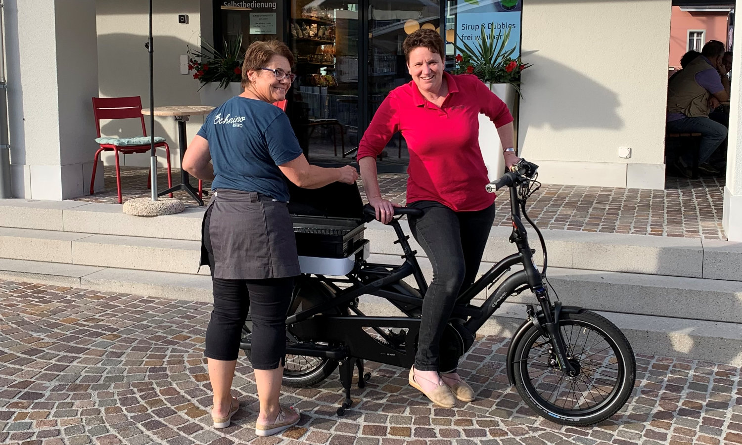 Die Bäckerei Pfenninger in Goldau bringt die Gipfeli per Cargobike in ihr Café.
