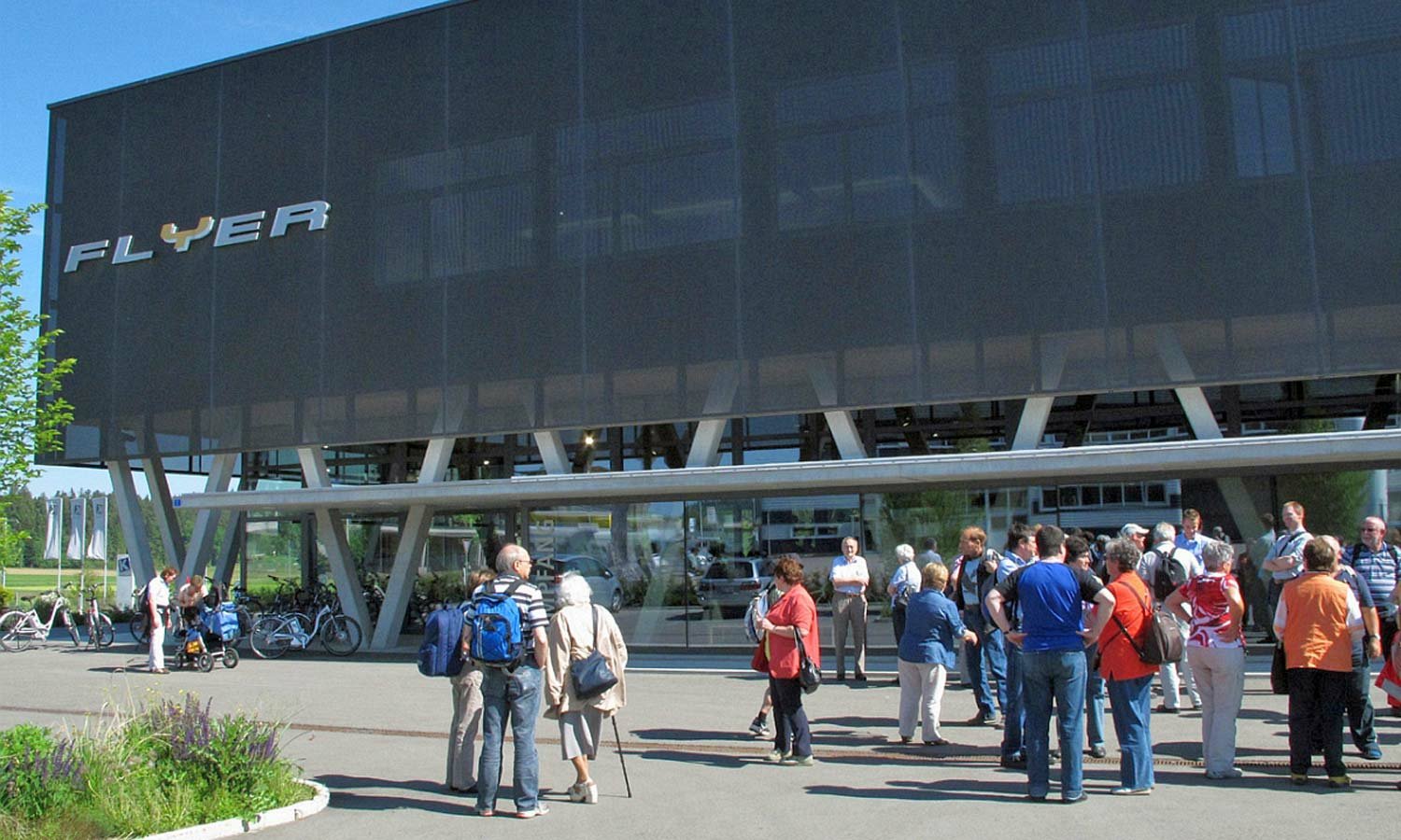 Der Schweizer Elektrovelo-Pionier. Die Flyer-Elektrovelo sind robust, zuverlässig, einfach in der Handhabung und werden in Huttwyl in einem der ersten Minergie-Fabrikgebäude der Schweiz fabriziert. Man mag der Meinung sein, dass sie nicht zu den schönsten Elekrovelos zählen, aber: Gut und unglaublich zuverlässig sind sie, und das ist sehr viel wert.Wir arbeiten mit Flyer seit 1998, als Flyer noch das Start-Up-Unternehmen der drei Flyer-Buben war. Wir kennen also den Classic Flyer, den avantgardistischen F-Flyer und natürlich alle Modelle mit dem Panasonic-Motor bestens (können sie flicken und haben auch noch immer Ersatzteile). Mit Stolz blicken wir auf den Winter 2001 zurück: Hans und Kurt retteten Flyer aus den damaligen Schwierigkeiten und baten uns um ein Darlehen, damit der Betrieb einfacher durch den Winter kommt, was wir natürlich gewährten (Heute wäre wir da mit unseren Möglichkeiten keine Hilfe mehr.).