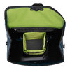 Wasserdichte Hinterradtasche (Einzeltasche) für E-Bikes mit Quick-Lock2.1 System; Taschendeckel mit magnetischem Verschluss; gepolstertes, herausnehmbares Fach für E-Bike (Unterrohr-)Akku; flexible Reißverschluss-Innentasche unter Deckel für E-Bike Display; mehrere Netzinnentaschen zur Organisation; flexible Netzaußentasche; formstabiler Taschenkörper, Tasche steht selbstständig; PU-beschichtetes Nylongewebe; abnehmbarer Tragegurt; Tragegriff; Reflektoren.