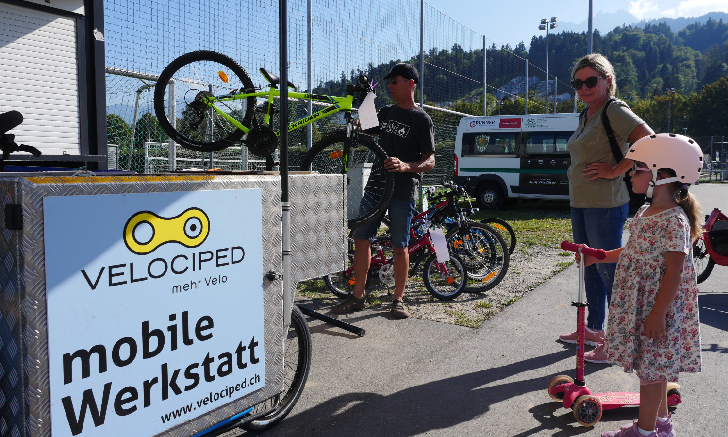 Beim Heimspiel vom 7. Oktober gegen Rapperswil waren wir wieder mit der mobilen Werkstatt vor dem Stadion und machten kostenlos Kleinreparaturen und Services an den Velos der Zuschauerinnen und Zuschauer.
