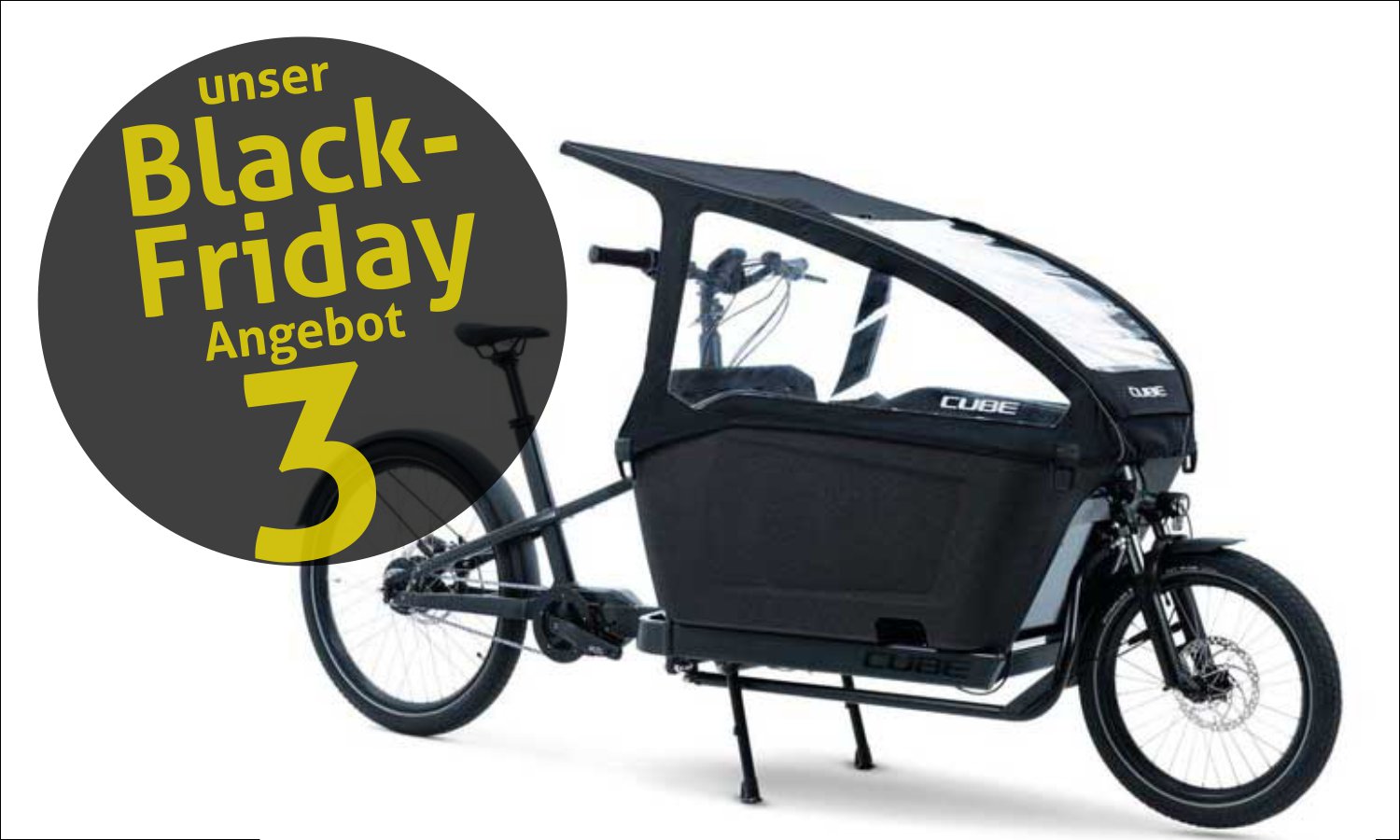 Für Familien: Das praktische Cube Familien-Cargobike mit Bosch CX-Motor, 500-Wh-Akku und 10-Gang Deore-Kettenschaltung zum Familien-Pack Preis von 4390.- (statt 5847.-). Inklusive Verdeck, Kindersitz. 2 Stück verfügbar.