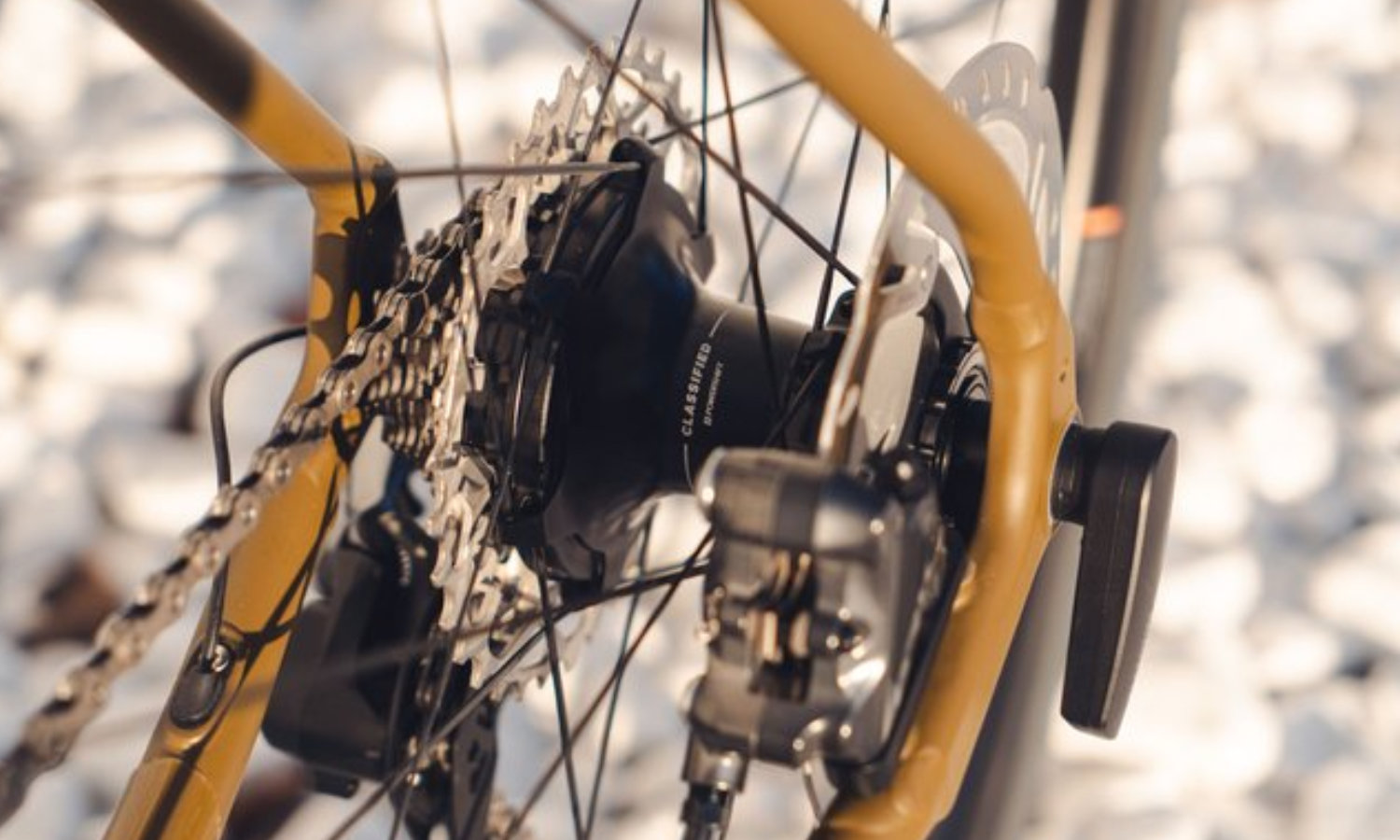 Da bietet sich die belgische Classified-Schaltung an: In der Classified-Hinterradnabe ist ein Zweigang-Getriebe integriert, welches per Knopfdruck blitzschnell in eine leichtere Übersetzung schaltet. Und dies gar während dem Pedalen unter Last. Die Classified-Schaltung macht das, was der Umwerfer und die Zweifach-Kettenblätter vorne machen - nur besser. Und: Sie lässt sich mit verschiedensten Kettenschaltungen kombinieren und bei Gravelbike und MTBs einbauen.