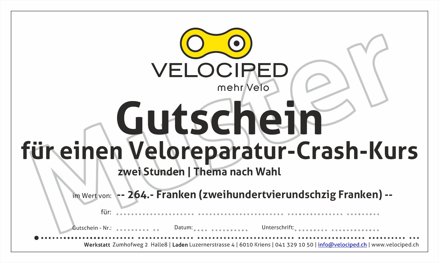 Neben den klassischen Gutscheinen im Wert von 20.- / 50.- / 100.- Franken stellen wir dir auch Gutscheine in einem Betrag nach deinem Wunsch aus. Dazu gibt es auch Gutscheine für die Veloreinigung in unserer Waschanlage oder Gutscheine für einen Crash-Kurs zusammen mit unseren Mechaniker:innen zum Thema der Wahl.