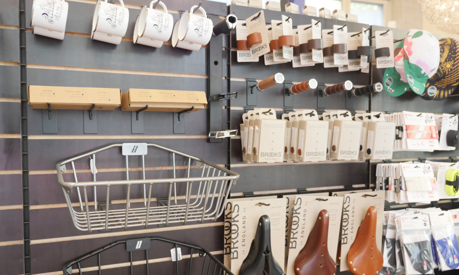 Neben den Velos gibt es auch eine grosse Auswahl an Zubehör und Accessoires von Schindelhauer, Pelago, Fahrer Berlin, Brooks, ABUS und Ortlieb. Alles für die Stadtvelofahrer:innen in ausgesuchter Qualität.