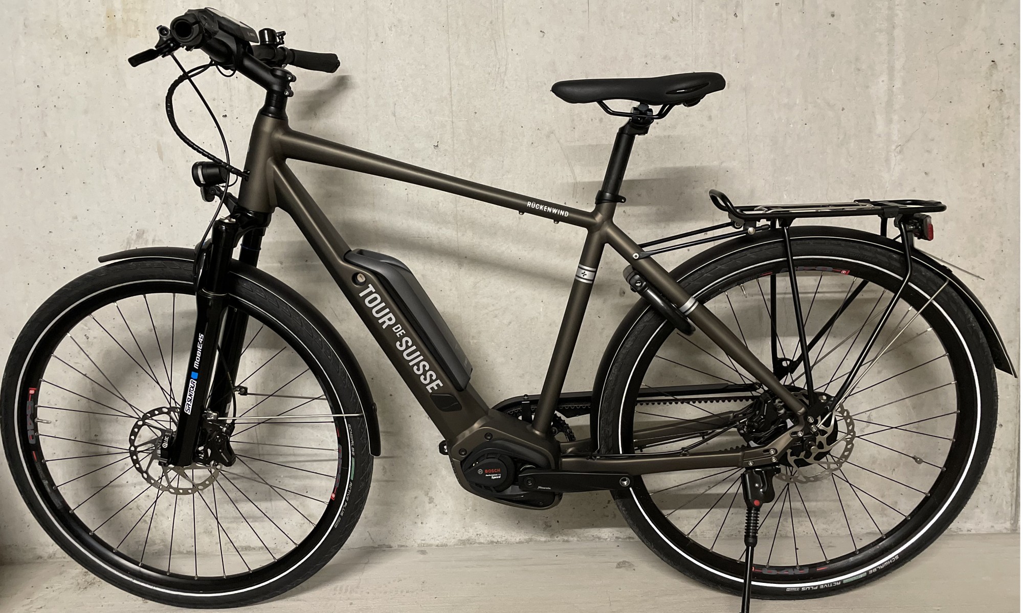Elektrovelo Tour-de-Suisse Rückenwind 45km/h, Bosch Motor, Herren 53cm, quarzgrau matt, (statt 5499.-, 190 km)